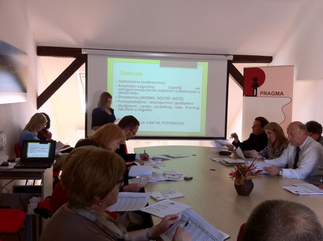 Pragma je na javnoj raspravi održanoj 6. svibnja 2011. godine u prostorijama Krapinsko-zagorske županije predstavila prve rezultate kvalitativnog istraživanja „Socijalne usluge u Krapini“. Na skupu su sudjelovali predstavnici Krapinsko-zagorske županije, centara za socijalnu skrb, Zavoda za javno zdravstvo, Hrvatskog zavoda za zapošljavanje, ustanova socijalne skrbi, organizacija civilnog društva i medija.